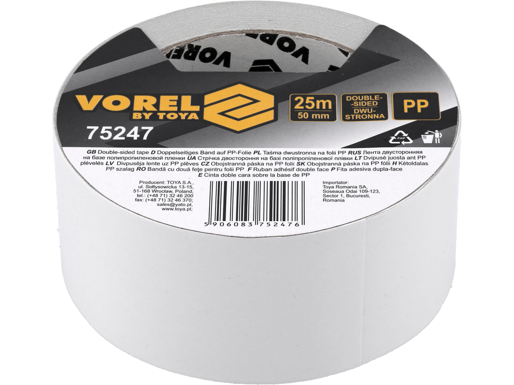 TAŚMA DWUSTRONNA NA FOLII PP 50 MM X 25 M