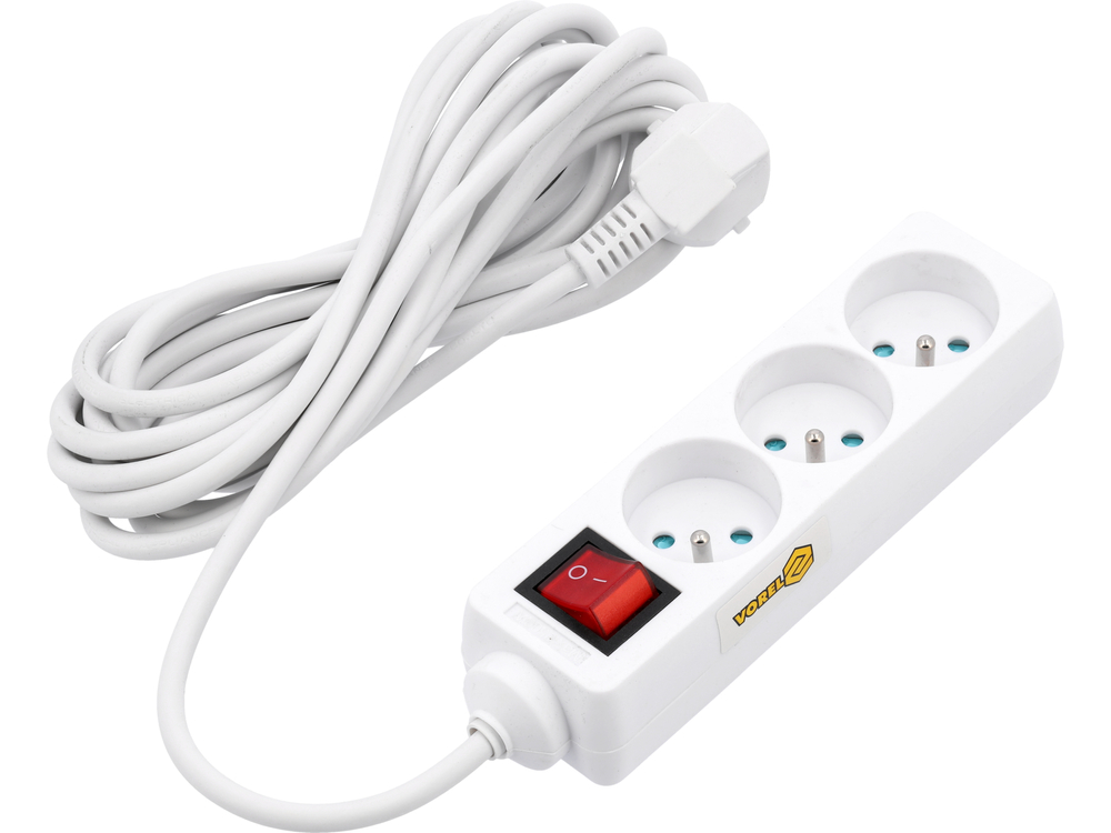PRZEDŁUŻACZ ELEKTRYCZNY, BIAŁY, 3 GNIAZDA Z UZIEMIENIEM, 5M Z WYŁĄCZNIKIEM