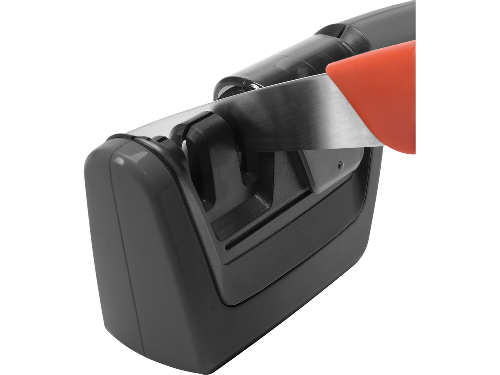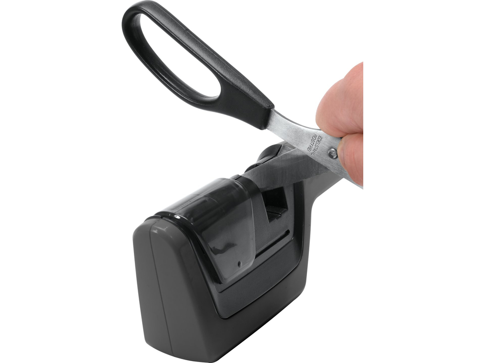 4 funkcyjna ostrzałka do noży stalowych i ceramicznych oraz do nożyczek. Wyposażona w trzy ostrza: - diamentowe – do ostrzenia wstępnego noży ceramicznych, - węglik wolframu - do ostrzenia wstępnego noży stalowych oraz nożyczek, - ceramiczne - do ostrzenia końcowego. Wyjątkowy model na rynku. Poza standardowym ostrzeniem noży stalowych, umożliwia także ostrzenie noży ceramicznych. Proces ostrzenia odbywa się dwuetapowo: rozpoczynamy wstępnym ostrzeniem ostrzem z węglika wolframu do noży stalowych lub diamentowym do noży ceramicznych następnie wykonujemy ostrzenie końcowe ostrzem ceramicznym. Zapewnia to bardzo szybkie i precyzyjne naostrzenie ostrzy oraz odpowiednie ich wykończenie, pozostawiając krawędź równą i gładką. Dodatkową funkcją jest możliwość naostrzenia nożyczek. Ruchome ostrze z węglika wolframu samoistnie dostosowuje kąt do ostrza nożyczek. Dzięki temu ich ostrzenie jest bardzo łatwe i szybkie. Korpus wykonany jest z trwałego i mocnego ABS. Wygodna rękojeść z antypoślizgową podstawką zapewnia komfortowe i pewne trzymanie ostrzałki podczas pracy. Do ostrzenia noży stalowych i ceramicznych oraz nożyczek