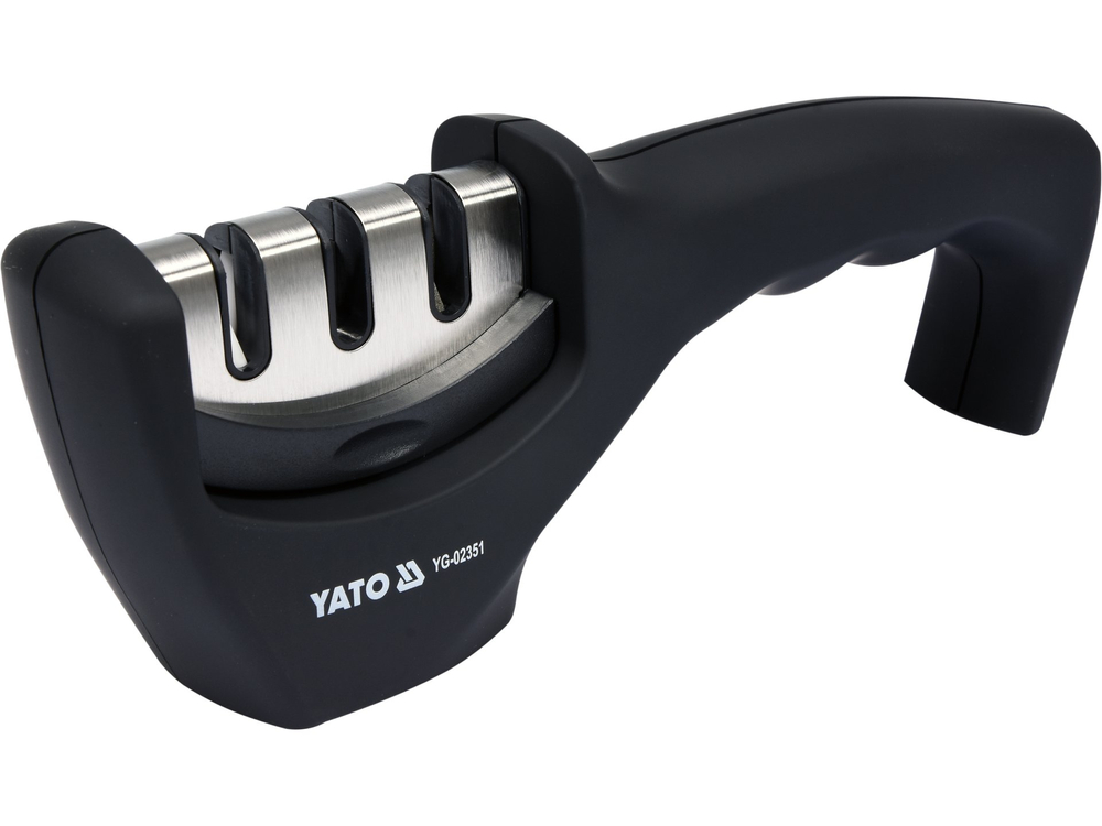 Wielofunkcyjna ostrzałka do noży stalowych i ceramicznych. Posiada 3 ostrza: - diamentowe – przeznaczone do ostrzenia wstępnego noży ceramicznych - węglik wolframu - przeznaczone do ostrzenia wstępnego noży stalowych - ceramiczne - przeznaczone do ostrzenia końcowego. Korpus wykonany jest z trwałego i mocnego ABS. Natomiast wygodna rękojeść z antypoślizgową podstawką zapewnia komfortowe i pewne trzymanie ostrzałki podczas pracy. Wyjmowana część robocza umożliwia łatwe i dokładne umycie ostrzałki. Do ostrzenia noży stalowych i ceramicznych