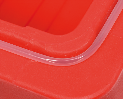 W pojemniku zamontowano uszczelkę wykonaną z wysokiej jakości silikonu, która zapobiega rozlewaniu płynnej zawartości. Jest ona łatwa do utrzymania w czystości, dzięki możliwości demontażu oraz specjalnemu kształtowi ułatwiającemu mycie pod bieżącą wodą.