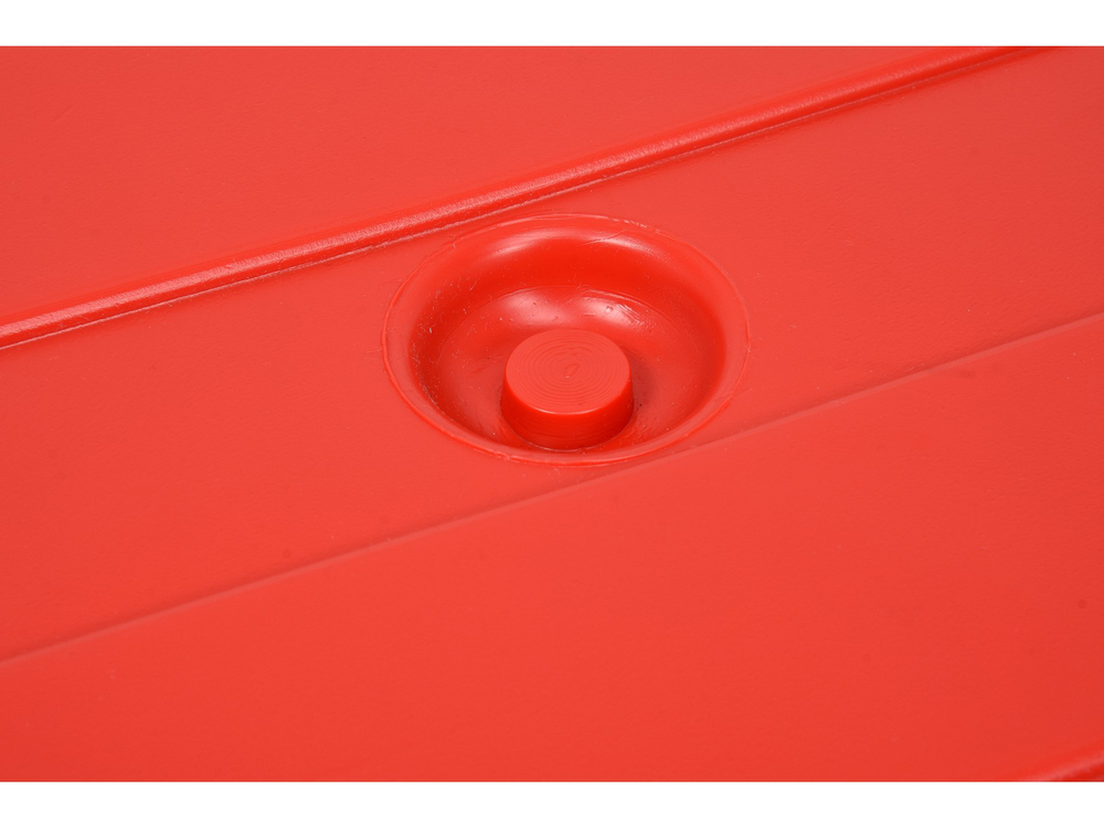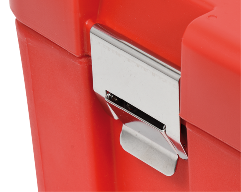 Przenoszenie pojemnika ułatwiają dwa specjalne wgłębienia oraz cztery masywne zatrzaski wykonane ze stali nierdzewnej. Wysoka jakość i wytrzymałość tych elementów, gwarantuje wieloletnie bezawaryjne użytkowanie. Dodatkowo, specjalne wytłoczenia umożliwiają sztaplowanie, czyli piętrowanie, dlatego możliwe jest składowanie ich na stosunkowo niewielkiej powierzchni.