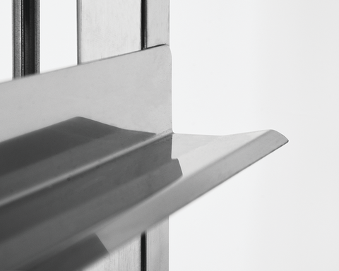 Rozmieszczone co 80 mm prowadnice, o specjalnej konstrukcji w kształcie litery L, gwarantują stabilne utrzymanie tac i blach oraz dużą powierzchnię dla przewożonych produktów. Po obu stronach wózka znajdują się specjalne, proste w obsłudze blokady, zabezpieczające pojemniki przed wysunięciem podczas transportu.