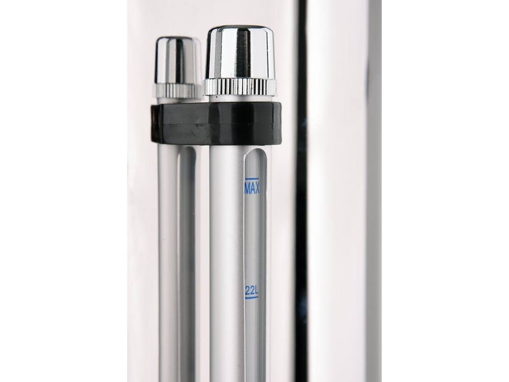 Na zewnątrz pojemnika znajduje się wskaźnik poziomu wody ze skalą wyrażoną w litrach. Po obu stronach są wygodne, nienagrzewające się uchwyty do przenoszenia. Ich konstrukcja stanowi jednocześnie system TWIST-LOCK dzięki czemu możliwe jest szczelne zamknięcie pokrywki. Zastosowany jest kranik o specjalnej konstrukcji, który zapobiega kapaniu.