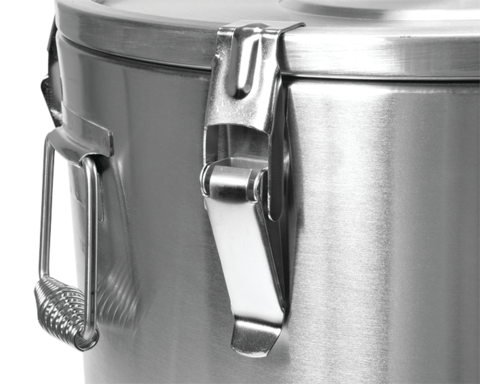 Pojemnik termoizolacyjny wyposażony jest w dwa wykonane ze stali nierdzewnej, masywne uchwyty ułatwiające transport oraz sześć zatrzasków zamykających pokrywę. Wysoka jakość i wytrzymałość tych elementów, gwarantuje wieloletnie bezawaryjne użytkowanie. Spód termosów YATO chroniony jest gumową osłoną, która zapobiega przesuwaniu się po podłożu w trakcie transportu.