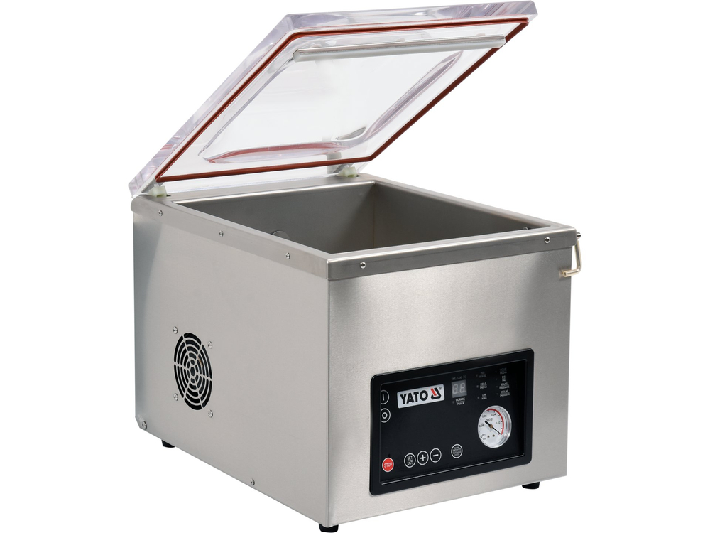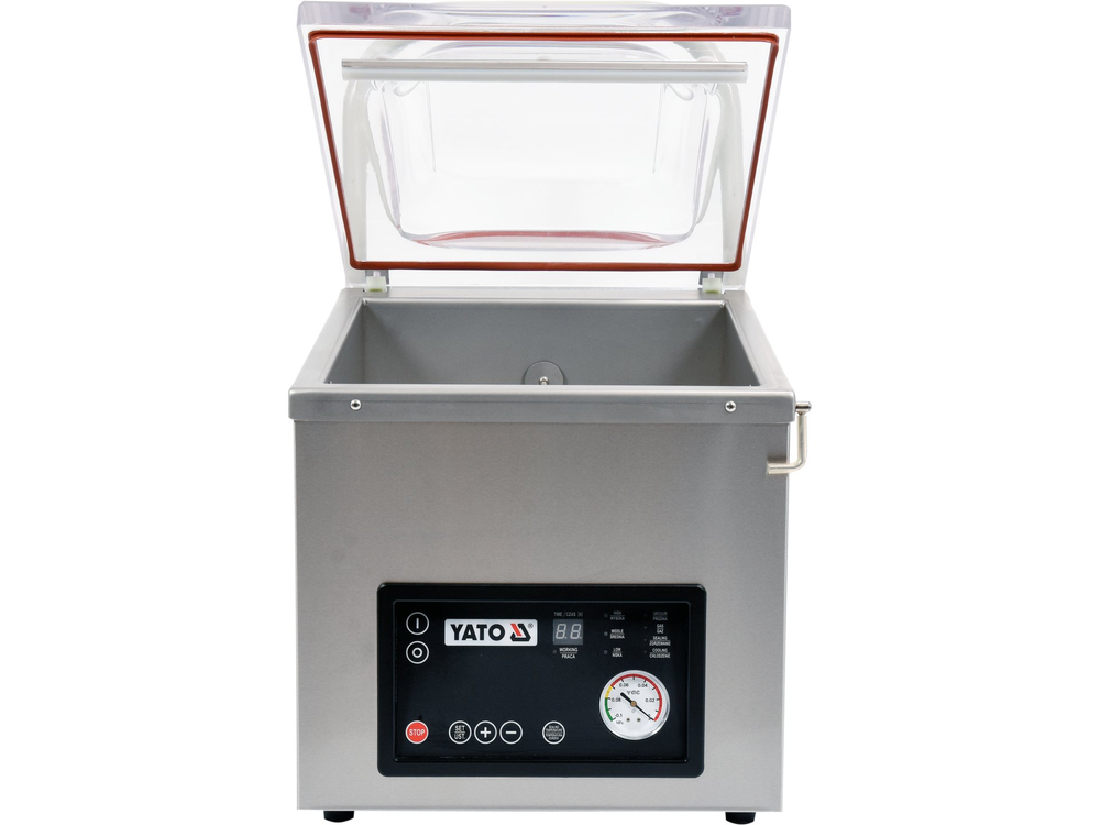 Pakowarka próżniowa marki YATO wykonana jest z najwyższej jakości surowców. Komora próżniowa, o wymiarach 450 x 370 x1 70 (220), zrobiona jest z grubej i masywnej stali nierdzewnej, co gwarantuje bardzo długi okres użytkowania. Zaokrąglone kształty ułatwiają utrzymanie jej w czystości. Pokrywa pakowarki wykonana jest z bardzo masywnego tworzywa sztucznego w transparentnym kolorze. Umożliwia to śledzenie procesu pakowania i pełną jego kontrolę. Ponadto pokrywa posiada wgłębienie, które dodatkowo zwiększa wysokość komory z 170 mm do 220 mm, umożliwiając pakowanie większych produktów. Pokrywa pakowarki wykonana jest z bardzo masywnego tworzywa sztucznego w transparentnym kolorze. Umożliwia to śledzenie procesu pakowania i pełną jego kontrolę.