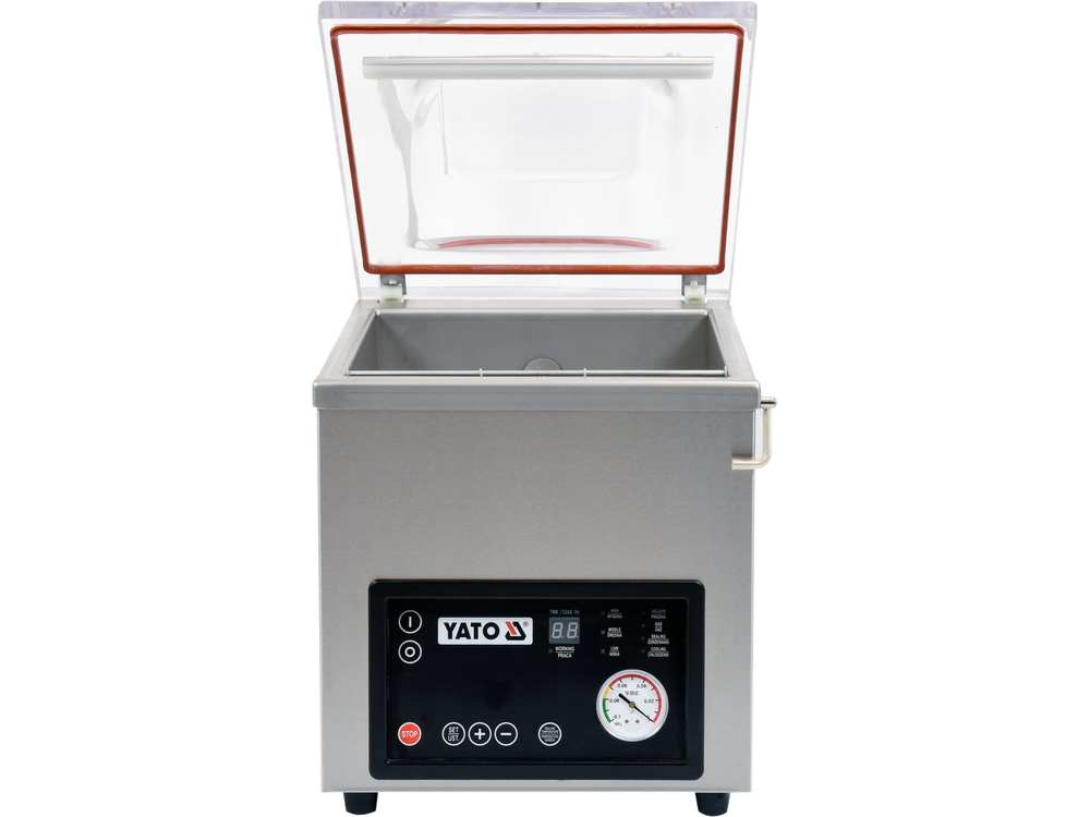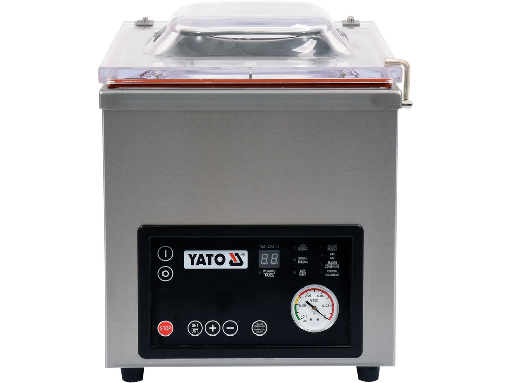 Pakowarka próżniowa marki YATO wykonana jest z najwyższej jakości surowców. Komora próżniowa, o wymiarach 370 x 320 x 135 (185), zrobiona jest z grubej i masywnej stali nierdzewnej, co gwarantuje bardzo długi okres użytkowania. Zaokrąglone kształty ułatwiają utrzymanie jej w czystości. Pokrywa pakowarki wykonana jest z bardzo masywnego tworzywa sztucznego w transparentnym kolorze. Umożliwia to śledzenie procesu pakowania i pełną jego kontrolę. Ponadto pokrywa posiada wgłębienie, które dodatkowo zwiększa wysokość komory z 135 mm do 185 mm, umożliwiając pakowanie większych produktów. Pokrywa pakowarki wykonana jest z bardzo masywnego tworzywa sztucznego w transparentnym kolorze. Umożliwia to śledzenie procesu pakowania i pełną jego kontrolę.