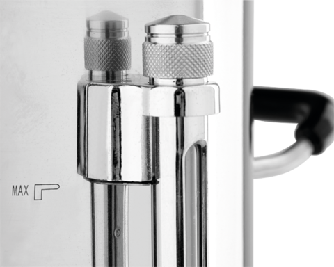 Na zewnątrz pojemnika znajduje się wskaźnik poziomu wody.