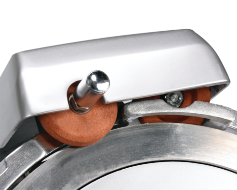 Wbudowana ostrzałka pół-automatyczna umożliwia szybkie naostrznie tarczy tnącej bez konieczności jej demontażu.