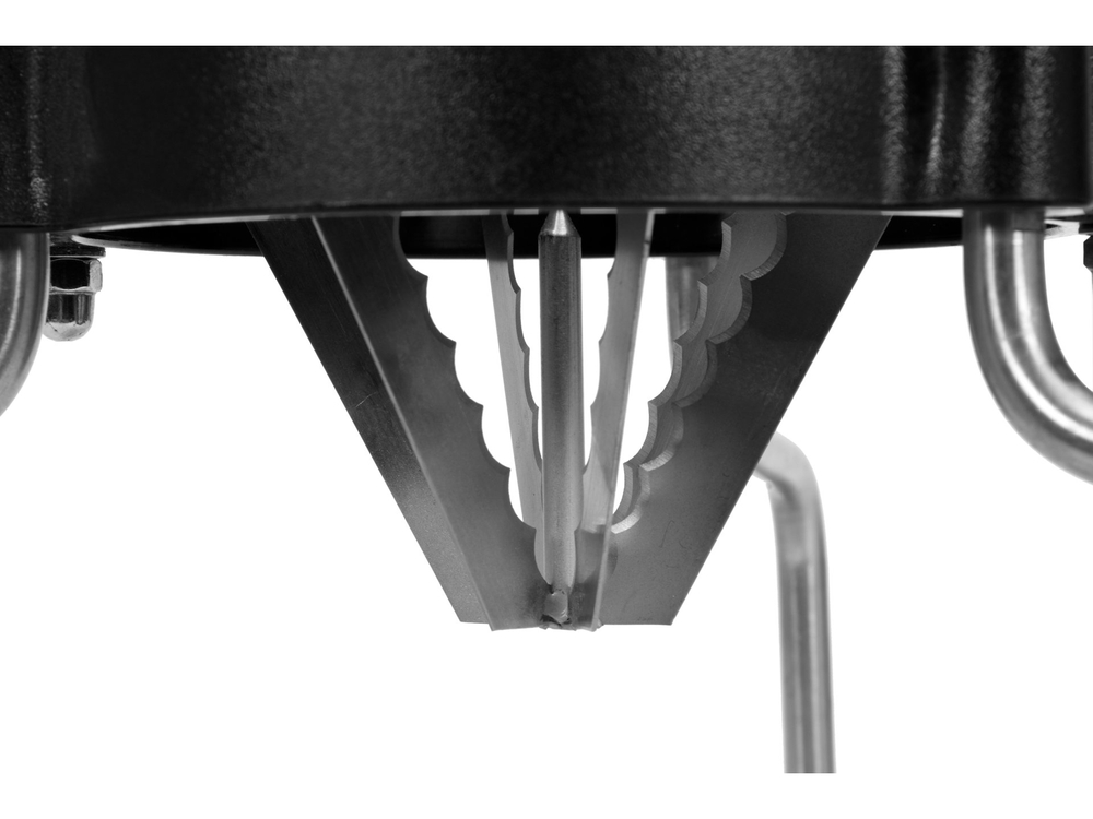 Krajalnica wyposażona jest w 3 stabilne nóżki z antypoślizgowymi nakładkami gwarantującymi stabilność podczas pracy. Bezpośrednio pod krajalnicą można ustawić miskę o średnicy do 280mm i wysokości max 140mm.