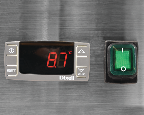 Elektroniczny sterownik marki Dixell z cyfrowym wyświetlaczem temperatury.