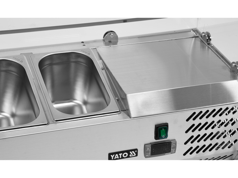 Nadstawna witryna chłodnicza marki YATO utrzymuje właściwą temperaturę przechowywanych składników do przygotowywania potraw: pizzy, sałatek, kanapek, itp. Natomiast nowoczesne wzornictwo połączone z wysoką jakością surowców powoduję, że witryna chłodnicza YATO doskonale prezentuje się na froncie we wszelkiego typu restauracjach, pizzeriach, barach czy hotelach.