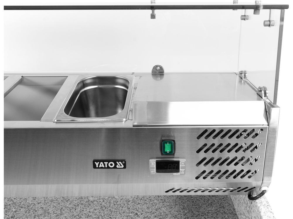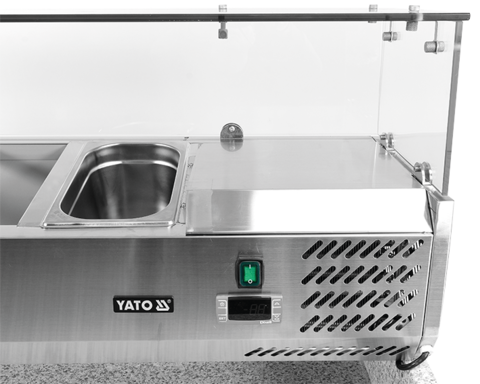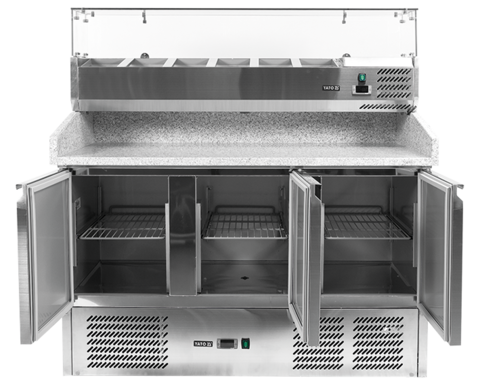 Stół chłodniczy 3-drzwiowy marki YATO YG-05275 z blatem roboczym z granitu oraz nadstawką 6xGN1/4.
