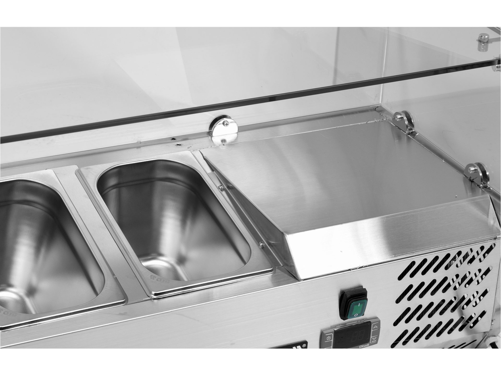 Nadstawna witryna chłodnicza marki YATO utrzymuje właściwą temperaturę przechowywanych składników do przygotowywania potraw: pizzy, sałatek, kanapek, itp. Natomiast nowoczesne wzornictwo połączone z wysoką jakością surowców powoduję, że witryna chłodnicza YATO doskonale prezentuje się na froncie we wszelkiego typu restauracjach, pizzeriach, barach czy hotelach.
