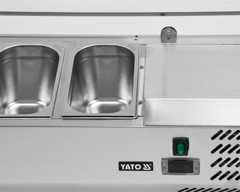 Nadstawna witryna chłodnicza marki YATO utrzymuje właściwą temperaturę przechowywanych składników do przygotowywania potraw: pizzy, sałatek, kanapek, itp. Natomiast nowoczesne wzornictwo połączone z wysoką jakością surowców powoduję, że witryna chłodnicza YATO doskonale prezentuje się na froncie we wszelkiego typu restauracjach, pizzeriach, barach czy hotelach.