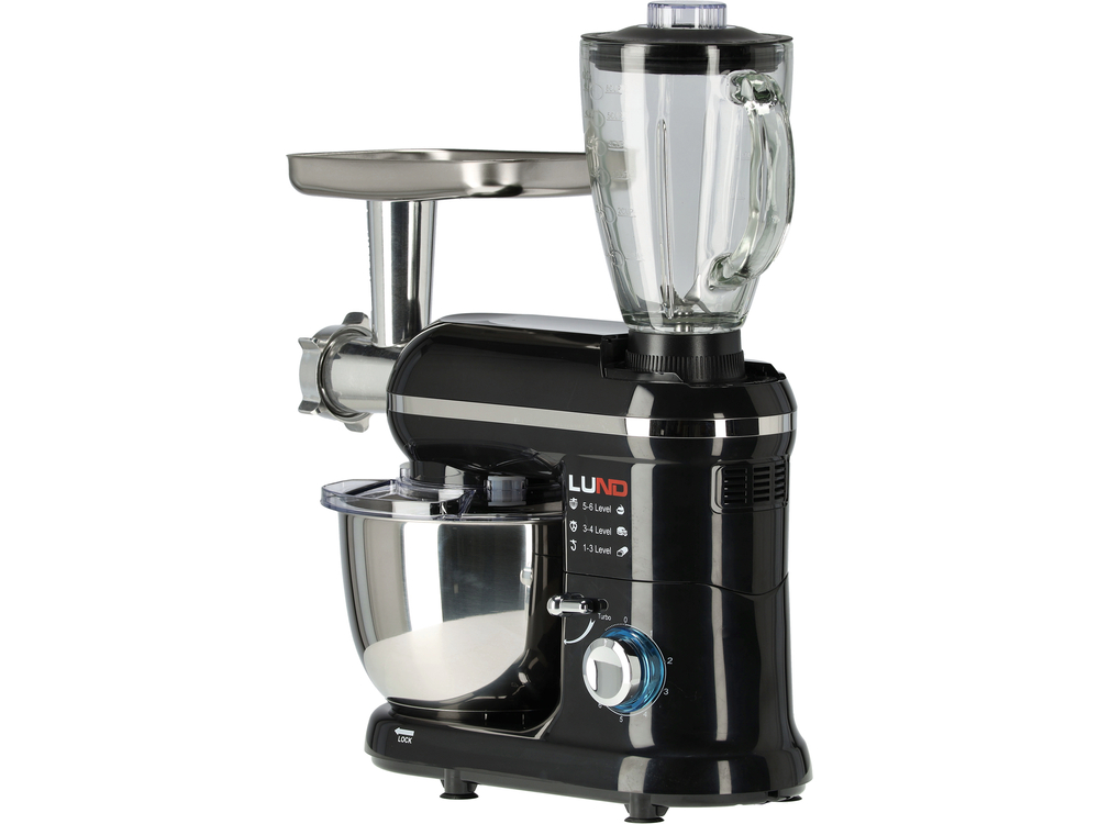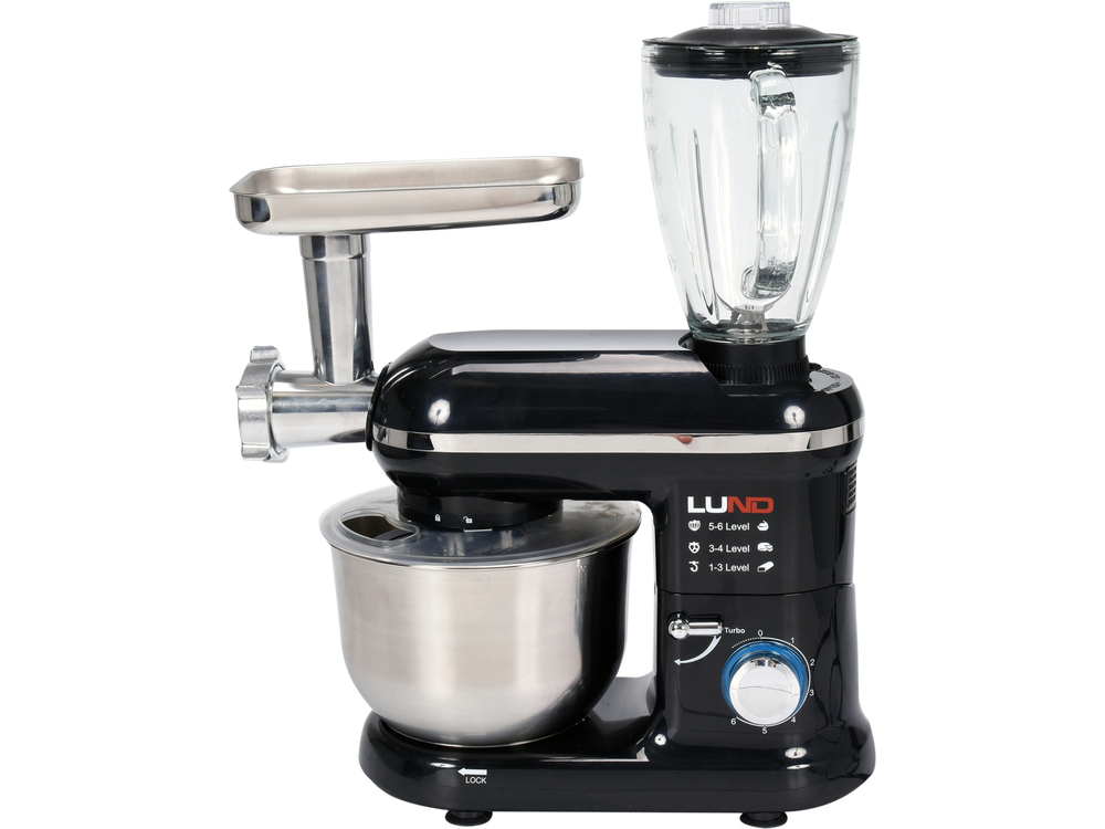 Uniwersalny mikser planetarny ze szklanym blenderem i maszynką do mięsa. Nieoceniony pomocnik w każdej kuchni, który ugniata, ubija, miesza, blenduje i mieli.