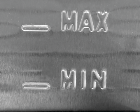 Każdy ze zbiorników frytownicy ma całkowitą pojemność wlewczą 10L. Natomiast minimalny poziom oleju wynosi 4L, a maksymalny 6L.