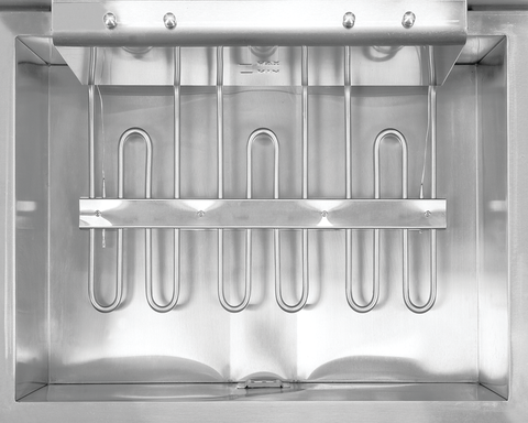 Grzałka o mocy 6,0kW sterowana jest za pomocą potencjometru umieszczonego na panelu sterującym. Możliwe jest ustawienie temperatury pracy w zakresie 60~200℃. Zainstalowane bryzgoszczelny wyłącznik pozwala na wyłączenie urządzenia, bez konieczności odłączania kabla zasilającego z sieci. Wyjmowana grzałka ma możliwość powieszenia jej na specjalnym uchwycie w pozycji, w której ściekający olej trafia z powrtotem do zbiornika. Smażalnik posiada dodatkowe zbezpieczenie, które automatycznie wyłącza grzałkę w momencie wyciągnięcia jej ze zbiornika. Dodatkowe zabezpieczenie chroni ją przed przegrzaniem, przy temperaturze powyżej 260℃.