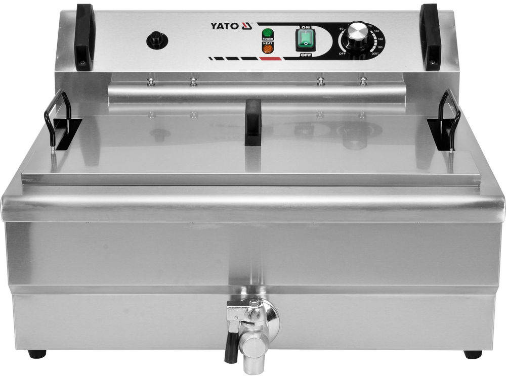 Dodatkowo smażalnik YATO posiada kranik spustowy, który umożliwia spuszczenie oleju ze zbiornika. Jest to szczególnie przydatna funkcja, dzięki której wymiana oleju odbywa się bardzo szybko. Poza tym umożliwia zlanie starego oleju bezpośrednio do kanistra, minimalizują w ten sposób ryzyko rozlania go.