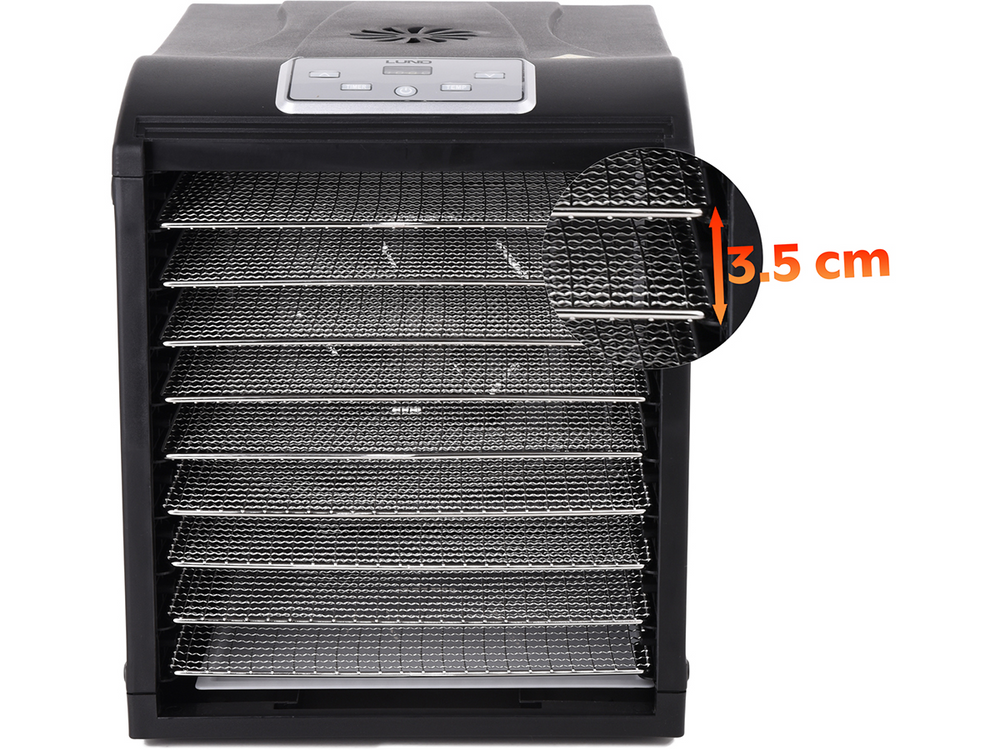 - Duża pojemność dzięki 9 sitom ze stali nierdzewnej, z wysokością 3,5 cm między nimi