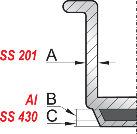 Wykonany jest z wysokiej jakości stali nierdzewnej 201 do użytku w gastronomii.