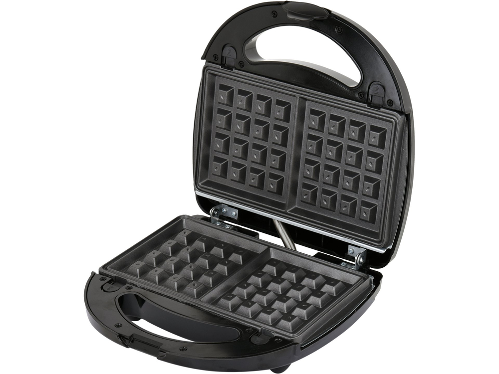 Opiekacz z trzema wymiennymi płytami: do tostów, gofrów i grillowania. Nieprzywierające powłoki zapewniają równomierne opiekanie i łatwe zdejmowanie jedzenie z płyt grzewczych.