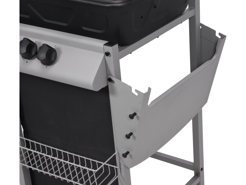 Dwie półki boczne ułatwiają przygotowanie potraw przed ułożeniem ich na grillu.