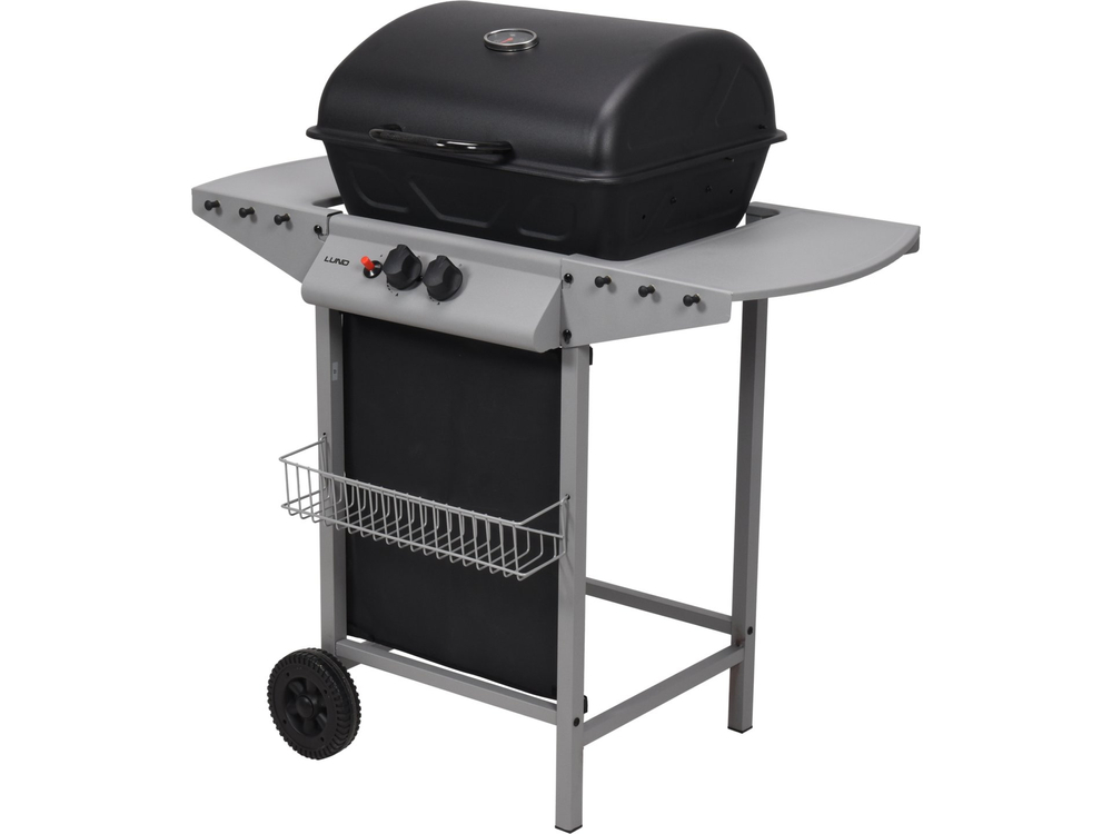 Grill posiada dwa palniki o mocy 2,75 kW każdy, co zapewnia łączną moc 5,5 kW. Grill gazowy nagrzewa się znacznie szybciej niż grill węglowy, a dzięki pokrętłom i termometrowi możńa z łatwością kontrolować temperaturę grillowania.
