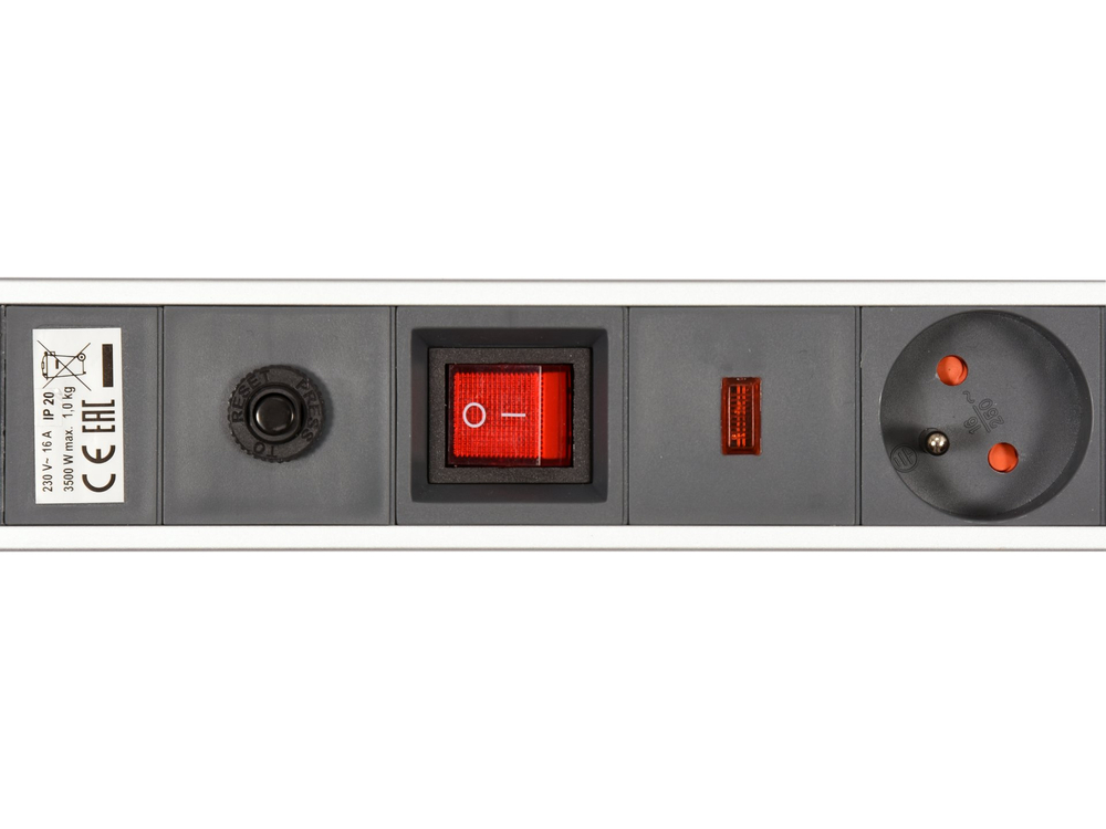 PRZEDŁUŻACZ LISTWA ZASILAJĄCA W ALUMINIOWEJ OBUDOWIE Z OCHRONĄ PRZECIWPRZEPIĘCIOWĄ I PRZECIĄŻENIOWĄ 6 GNIAZD Z UZIEMIENIEM WYŁĄCZNIK