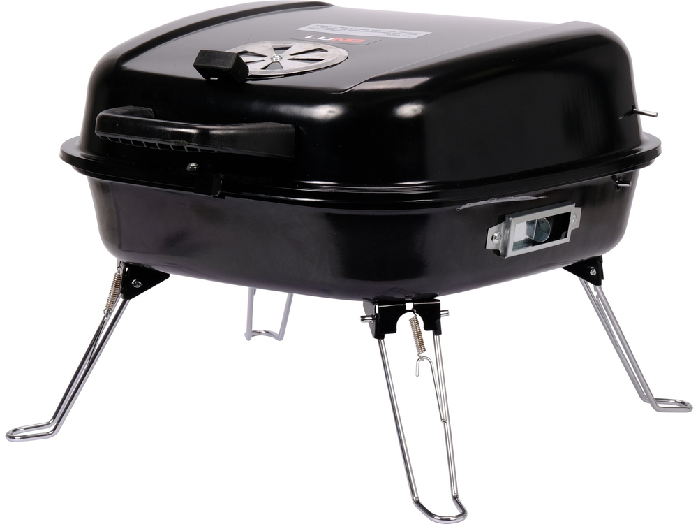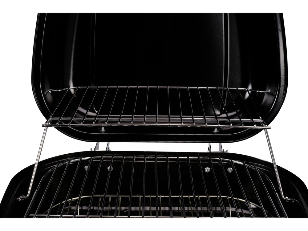 Przenośny grill turystyczny ze składanymi nóżkami umożliwi grillowanie zarówno w domu, na działce jak i na wycieczce. Niewielkie rozmiary ułatwią przechowywanie, przenoszenie i przewożenie. Duży, chromowany ruszt, kratka podgrzewająca oraz aż 2 otwory wentylacyjne zapewnią komfortowe grillowanie