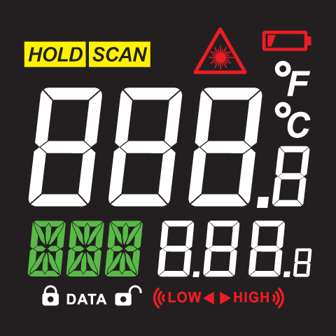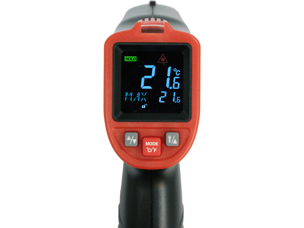 • funkcja stałego pomiaru temperatury bez konieczności trzymania spustu [symbol kłódki]