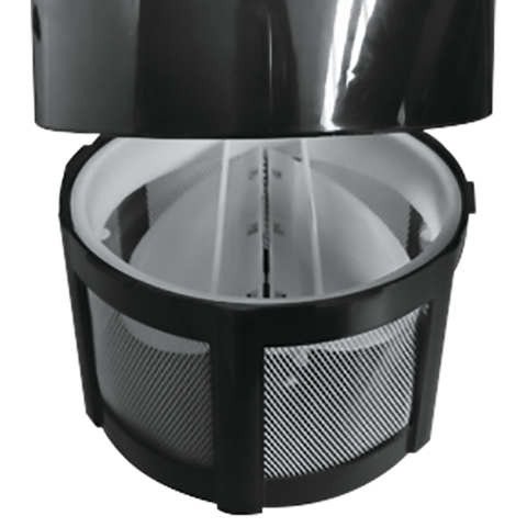 - Wentylator aspiracyjny wytwarza silny przepływ powietrza, aby wciągnąć szkodniki do urządzenia, a następnie uwięzić w pojemniku bez możliwości ucieczki