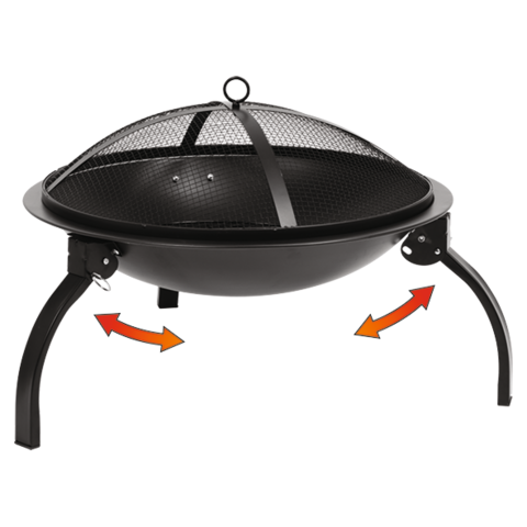3 składane, stalowe nóżki nie tylko chronią podłoże przed kontaktem z rozgrzaną misą, ale także ułatwiają transport i przechowywanie.