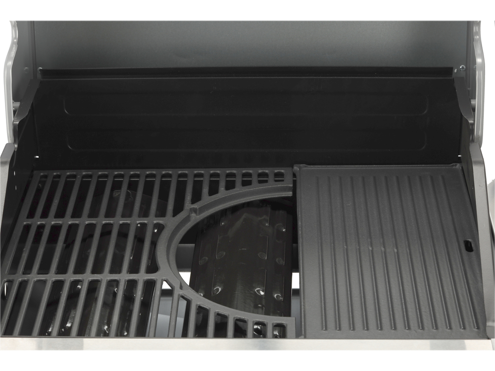 • Niezawodny, żeliwny ruszt, który szybko się nagrzewa i długo utrzymuje ciepło.