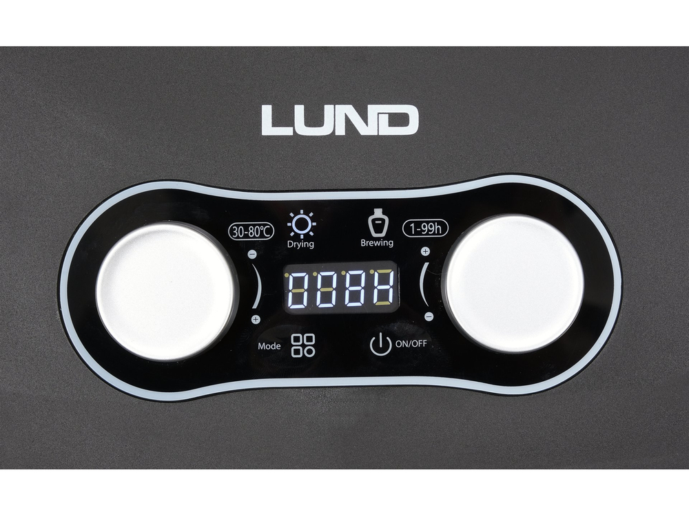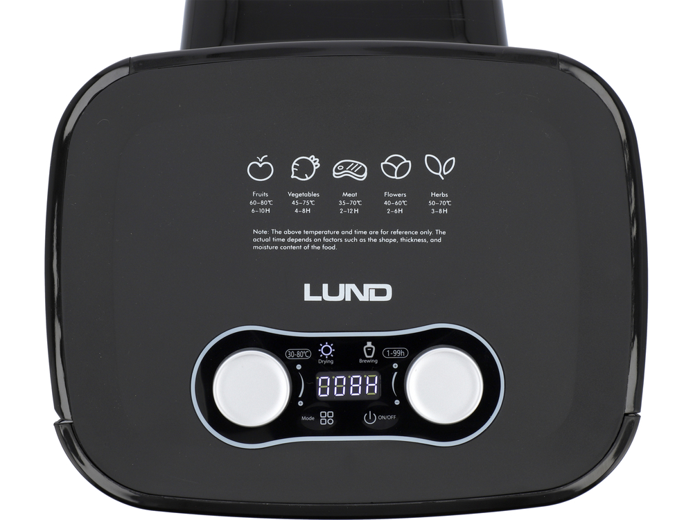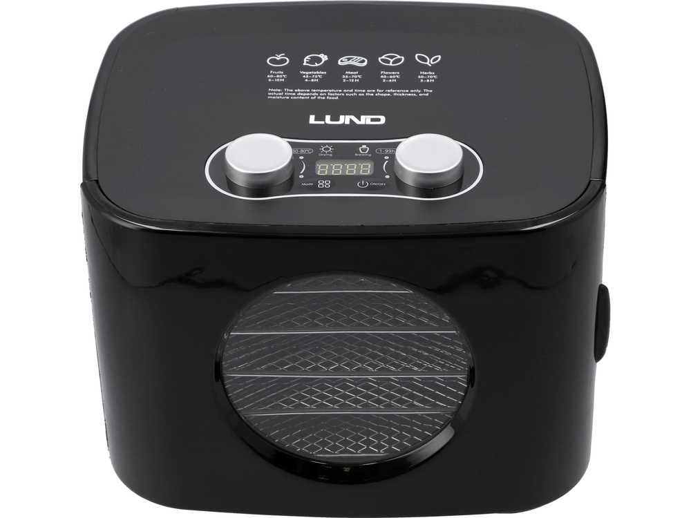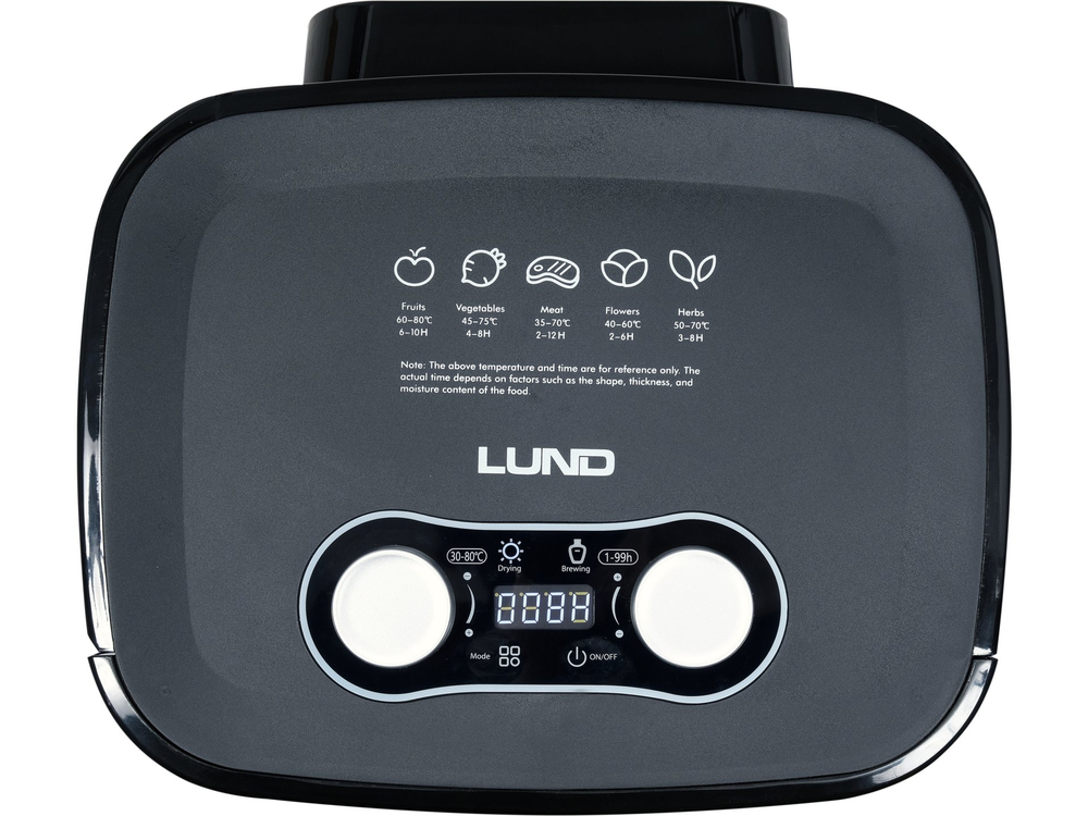 Suszarka spożywcza LUND o mocy 300-340W przeznaczona do suszenia produktów spożywczych: owoców, warzyw, grzybów, kwiatów, ziół, mięs i ryb. Pozwala zachować wartości odżywcze i smakowe żywności, konserwując ją na okres kilku miesięcy. Dzięki wbudowywanemu czasomierzowi, istnieje możliwość zaprogramowania suszenia w zakresie 1-99 godzin.