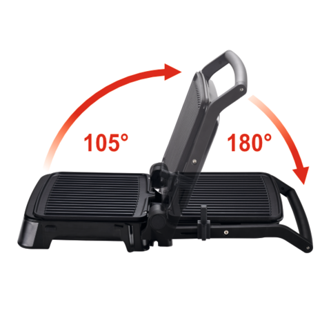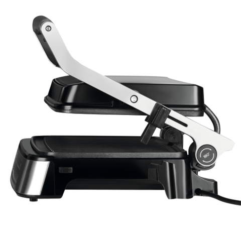 - 5 możliwości grillowania - grill złożony (przylegający do potrawy), grill złożony nisko (górna płyta nie przylega do potrawy), grill złożony wysoko (górna płyta nie przylega do potrawy), grill rozłożony 90°, grill rozłożony 180°