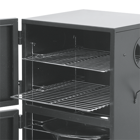 Wyposażona została w miejsce na dwa ruszty o wymiarach 35.5 x 32.5 cm, co daje ponad 2300 cm2 powierzchni przeznaczonej na ułożenie produktów do wędzenia.