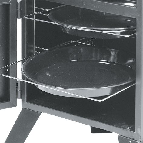 Dolna część wędzarni to również tradycyjny grill, wtedy należy użyć tylko jednej z mis i wypełnić ją paliwem. Do grillowania wykorzystujemy ruszty umieszczone bezpośrednio nad misą na pożądanej wysokości.