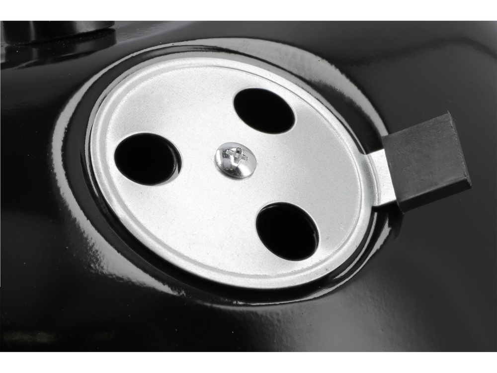 Przesłona do regulacji cyrkulacji powietrza umożliwia kontrolę nad poziomem rozżarzenia węgla, a w połączeniu z pokrywą pozwoli utrzymać i kontrolować temperaturę. Zatrzymuje też dym nadający potrawom smak i aromat.