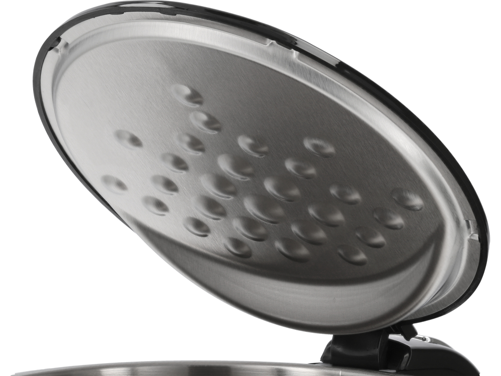 Wewnętrzna ścianka ze stali nierdzewnej zapewnia higieniczne środowisko, a zaoblona linia pozwala uniknąć osadzania się kamienia w rowkach.