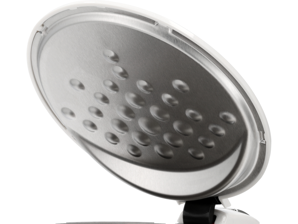 Wewnętrzna ścianka ze stali nierdzewnej zapewnia higieniczne środowisko, a zaoblona linia pozwala uniknąć osadzania się kamienia w rowkach.