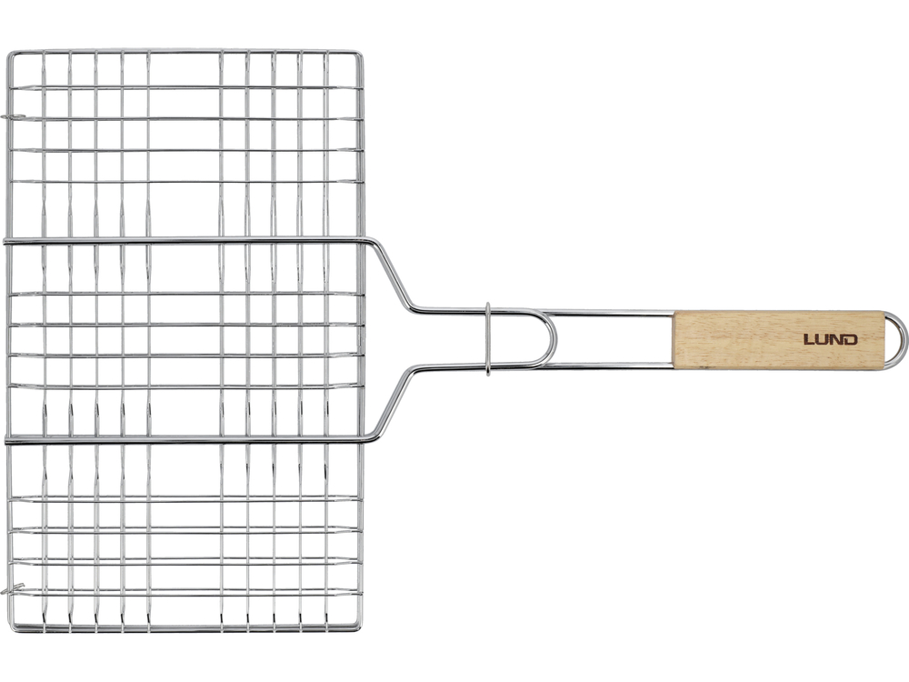 Przenośny, zamykany ruszt do grillowania utrzymuje skladniki w jednym miejscu, ograniczając ich spadanie z kratek grilla. Ułatwia przewracanie większej ilości jedzenia za jednym razem.