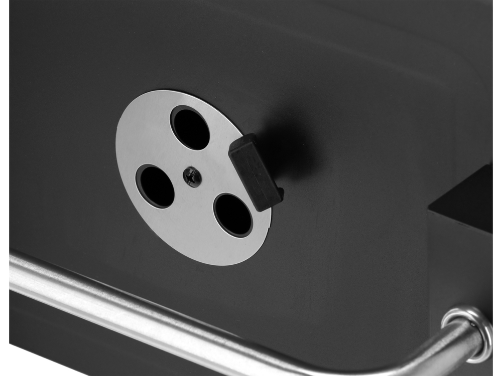System regulacji temperatury oparty na przesłonach wentylacyjnych, kominie oraz wbudowanym termometrze pozwala na precyzyjne sterowanie przepływem powietrza i utrzymanie optymalnej temperatury wewnątrz grilla.