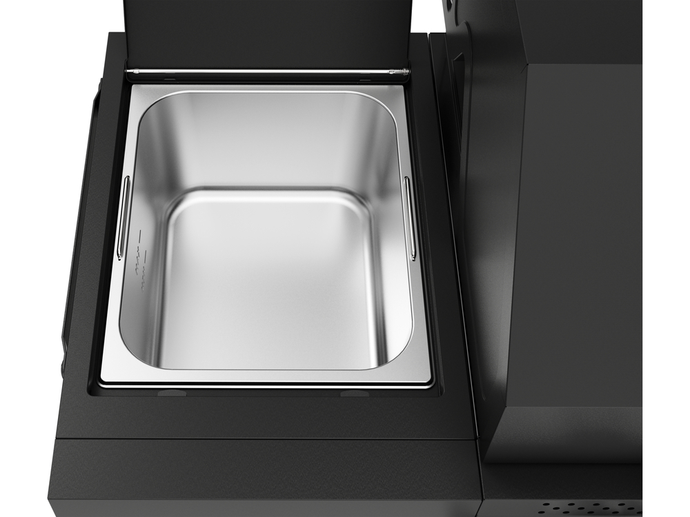 - wysuwane tacki ociekowa na tłuszcz skutecznie zbiera nadmiar tłuszczu i soków podczas grillowania, zapobiegając ich kapaniu do wnętrza urządzenia. Dzięki temu utrzymanie grilla w czystości jest łatwiejsze, a końcowe sprzątanie zajmuje mniej czasu. Tacka pod główna komorą oraz pod palnikiem infrared.