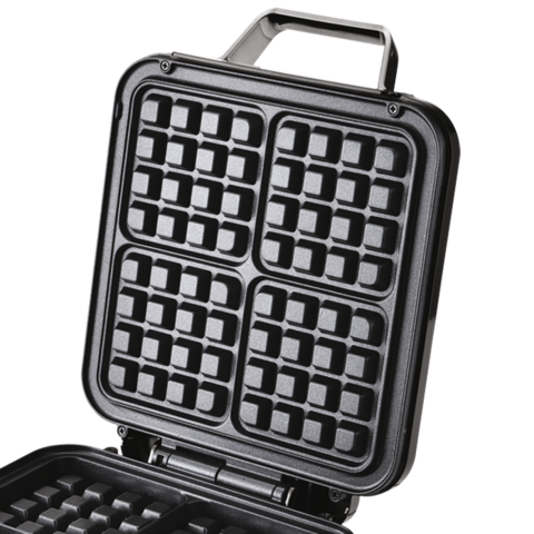 Przygotuj jednocześnie 4 kwadratowe gofry z głębokimi rowkami, które pomieszczą ulubione dodatki. System odprowadzania pary zapewnia chrupiącą skórkę i puszyste wnętrze – idealne śniadanie dla całej rodziny.