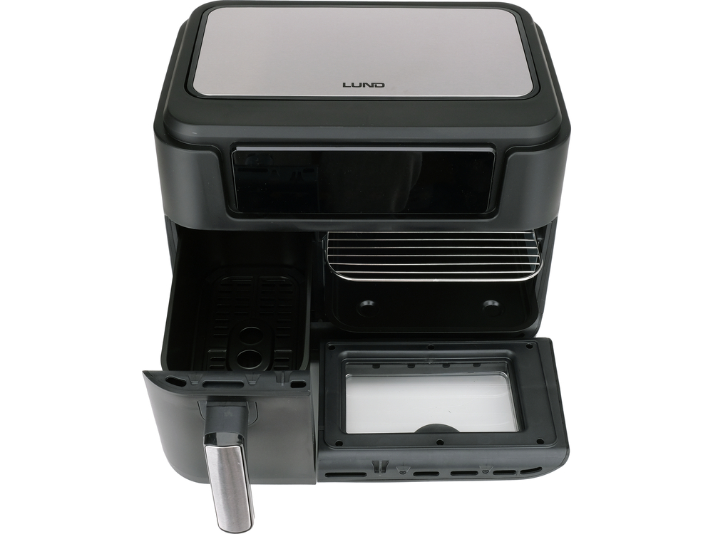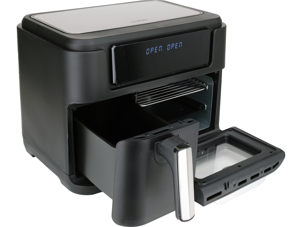 Wielofunkcyjna frytkownica beztłuszczowa z dwoma oddzielnymi misami to praktyczne urządzenie, które zastąpi kilka sprzętów kuchennych, pozwalając przygotować zdrowe i szybkie posiłki dla całej rodziny i gości. Posiada nieprzywierającą powłokę, dzięki której wystarczy odrobina tłuszczu lub jego zupełne wyeliminowanie, aby przyrządzić smaczne i aromatyczne potrawy. Umożliwia rozmrażanie, podgrzewanie, pieczenie, smażenie i grillowanie warzyw, mięs, ryb oraz słodkich i wytrawnych wypieków.