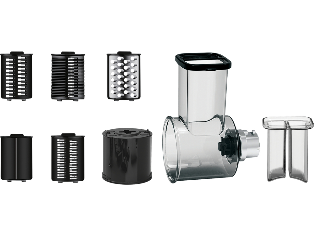 Dzięki solidnej konstrukcji i wymiennym ostrzom przystawka jest wygodna w użyciu, łatwa do czyszczenia i pozwala w krótkim czasie rozdrobnić warzywa.